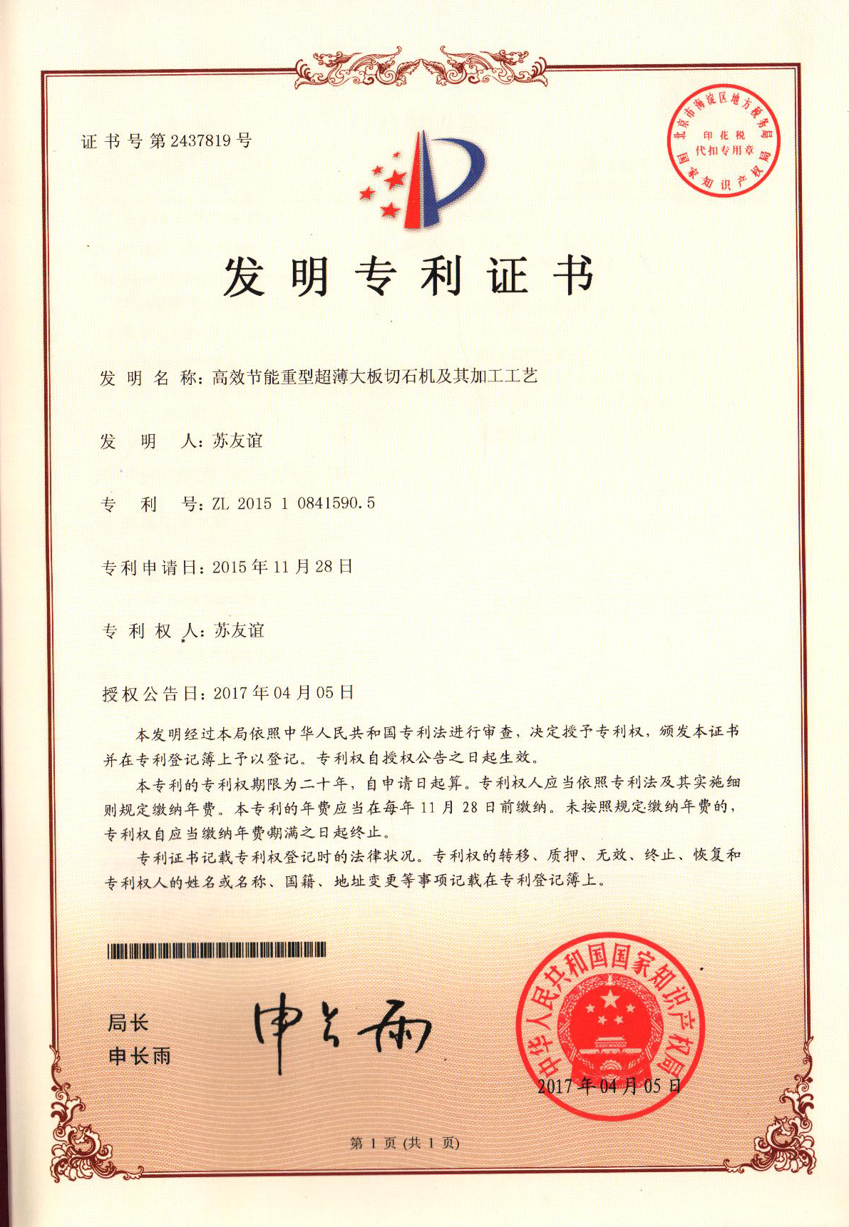 發明專利證書(仿冒必究) 查詢(點擊)